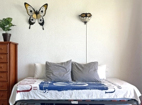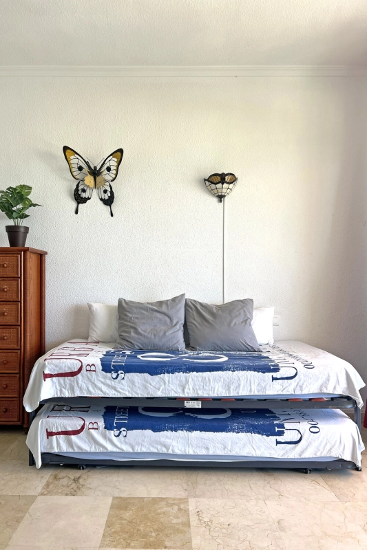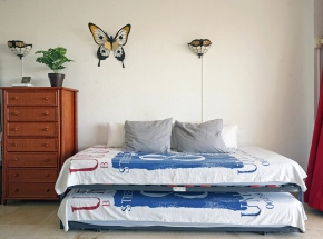 De kamer heeft een comfortabel tweepersoonsbed met grote matrassen van 90x200cm. Linnengoed, beddengoed, en handdoeken zijn inbegrepen. Een derde bed is op aanvraag beschikbaar.