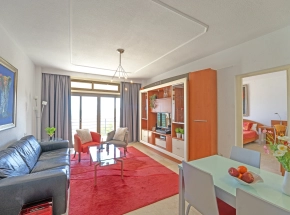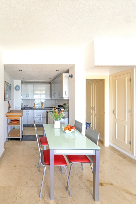 Don Leo is een appartement met luxe inrichting. Het appartement is sinds de zomer van vorig jaar toegevoegd aan onze portfolio! Het appartement is voor zien van airconditioning, badkamer met een douche, een ruime woonkamer met een keuken met toebehoren zoals een magnetron, vaatwasser en een koelkast met een vriesvak. Verdere accessoires zoals een waterkoker, broodrooster en een koffiezet apparaat zijn ook aanwezig. Daarnaast is er een wasmachine aanwezig evenals IPTV met Nederlandse zenders en WiFi. Verder beschikt appartement Don Leo over een zonnig terras met tuinstoelen en een elektrisch zonnescherm. Er is een 24-uur receptie en u kunt ook gebruik maken van de ondergrondse parkeergarage of de grote parkeerplaats voor de ingang. De prijs van elektriciteit en water is inbegrepen in de huurprijs. Ten slotte hebben huurders ook toegang tot het zwembad en/of kinderbad op dakterras.